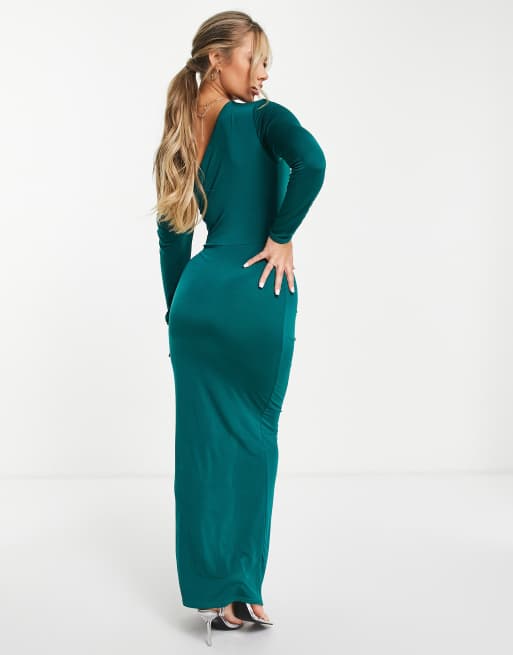Product Name: Emerald green wrap over long sleeve bardot maxi dress deals