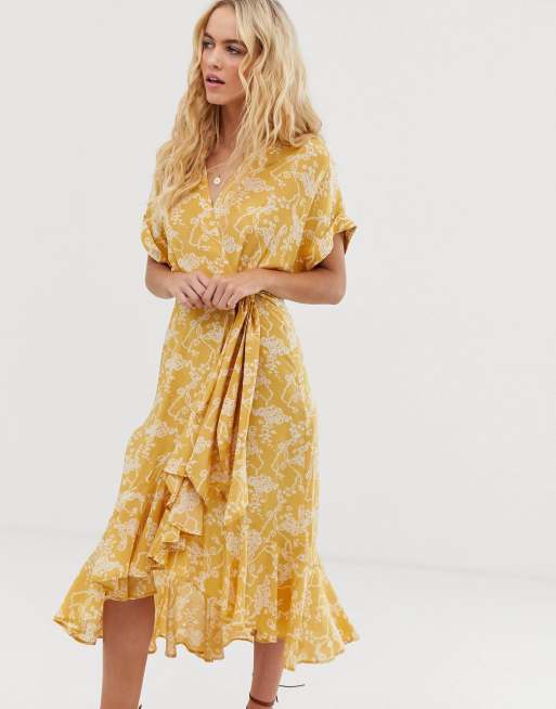 Product Name: Other stories cloud print ruffled wrap dress in yellow deals
